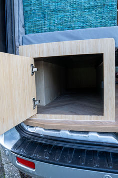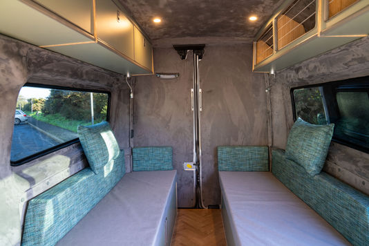 - Custom built storage units (overhead unit and pull out draws under sofa bed)